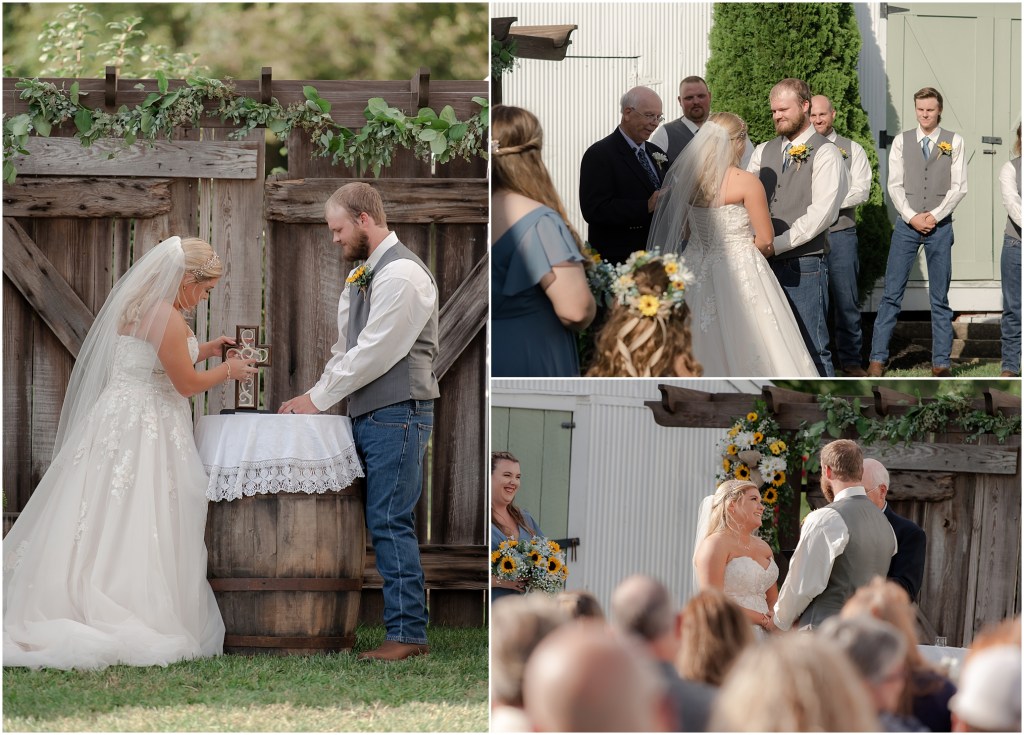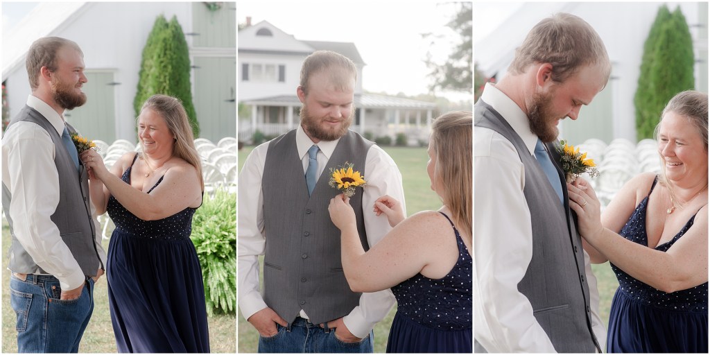 Krista and Andrew were married on a beautiful fall day at the Barns at Timberneck in Surry. We had never shot there but, oh my gosh, it did not disappoint. The rustic barnes tied in so perfectly with Krista and Andrew’s cowboy boots, burlap, and sunflowers. I loved the long, family style tables set up for the reception. To me, that really brought together the theme for the day: family.
